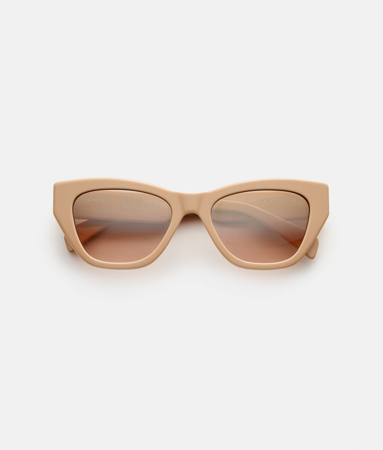 Upcycled + earth-conscious solid ecru Italian acetate frame with bronze mirrored bio nylon lens offering 100% UVA+UVB protection.