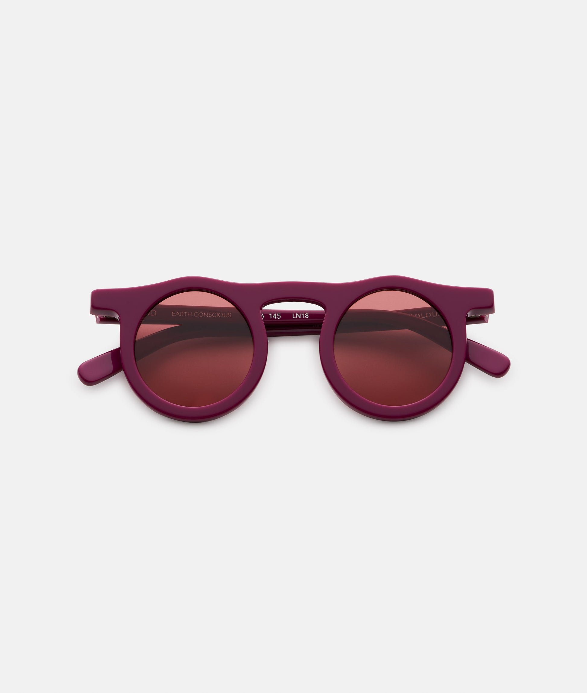 Solid, dark-purple eco-acetate frame with matching purple lenses. 100% UVA + UVB protection.