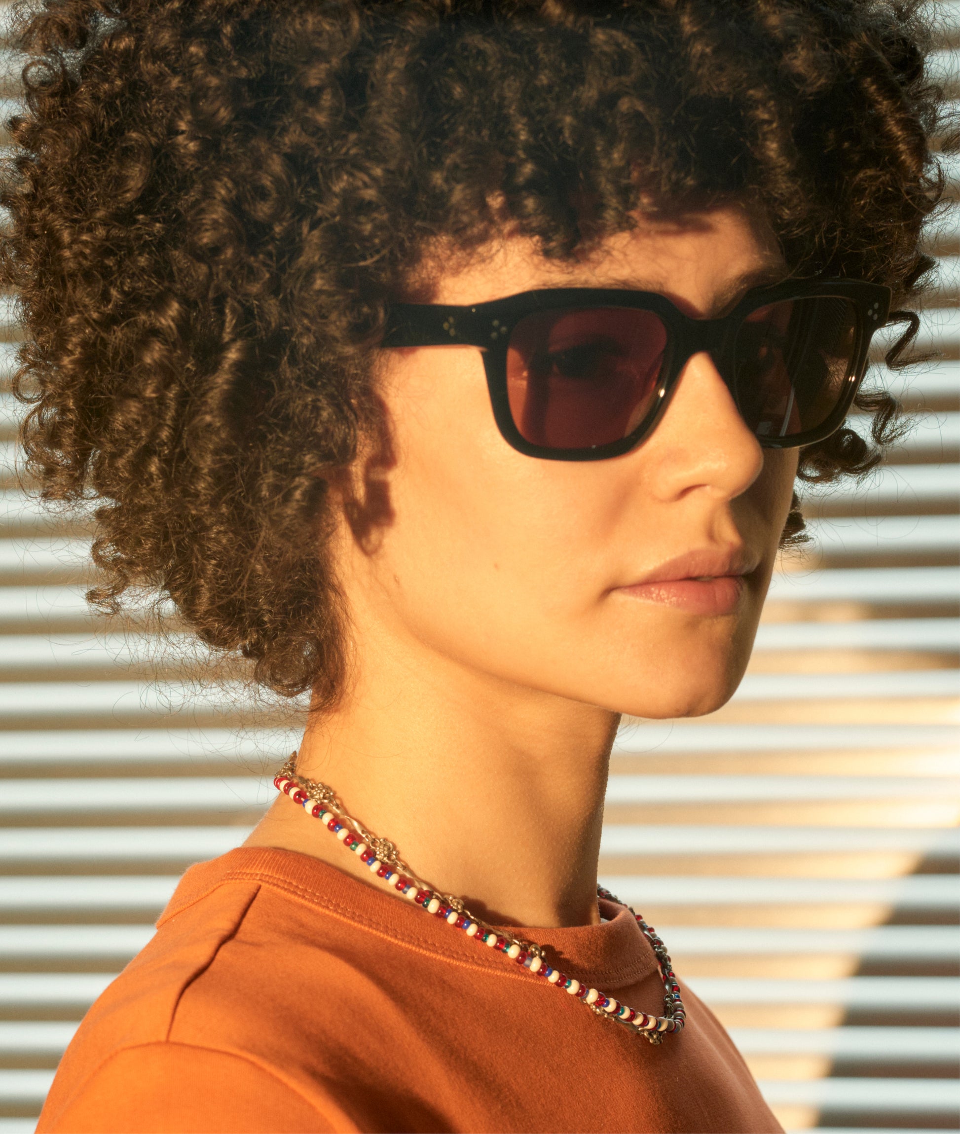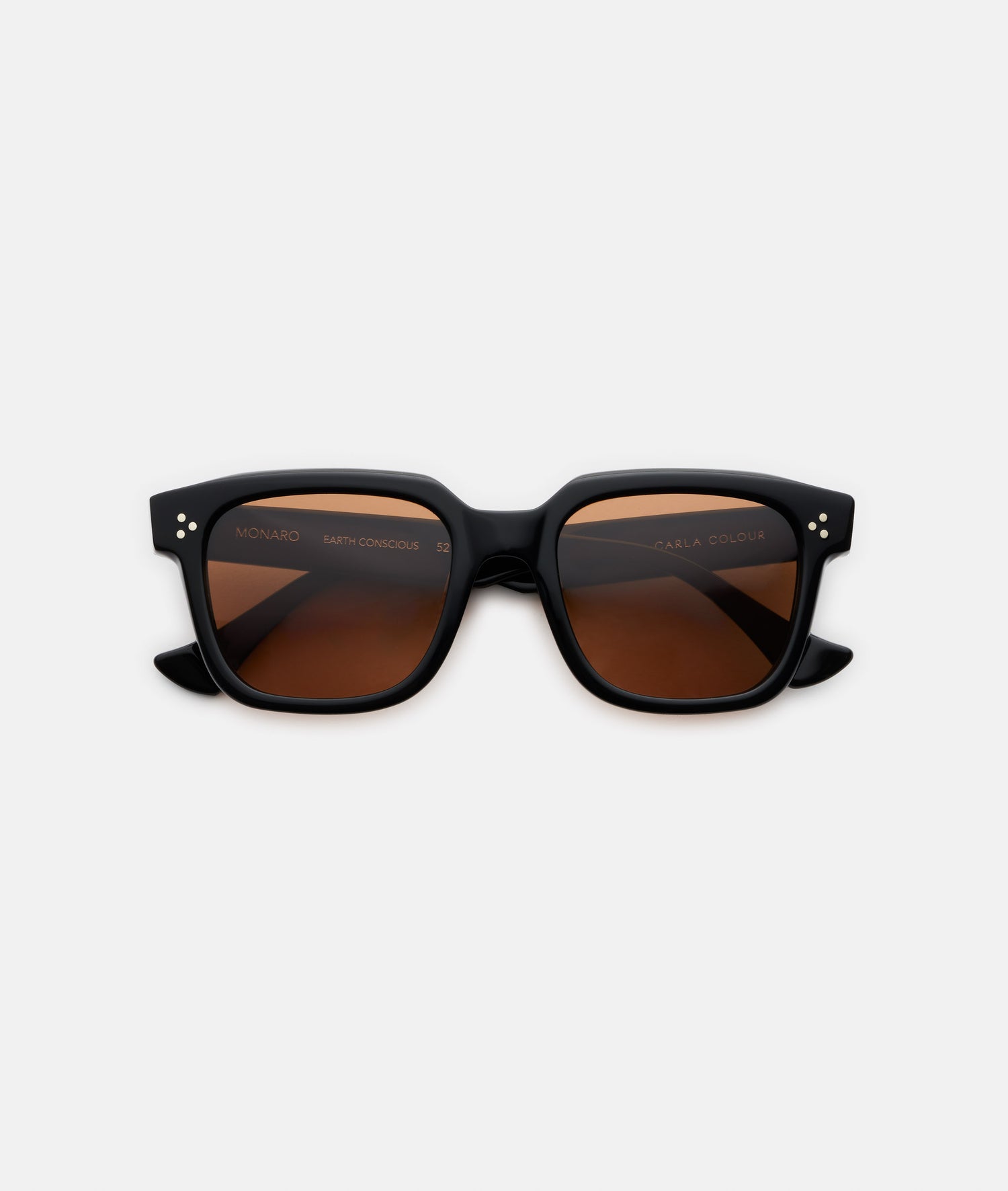 Classic Italian black eco acetate frame with the deep brown lens offering 100% UVA + UVB protection.