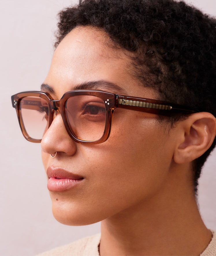 Monaro in coral dune is our smooth desert driver. The soft pink gradient lens gives sexy sunset style, and the strong square acetate frame is flattering and chic.